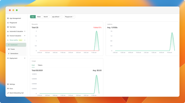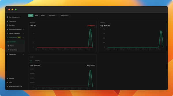 - Monitor cost, latency, and the number of calls to your applications in real-time.