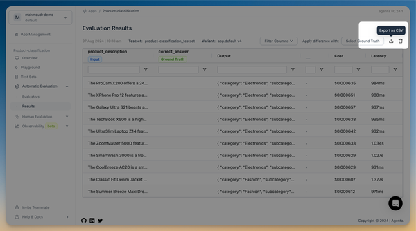 • We have added a new export button in the evaluation view to export the results as a CSV file.