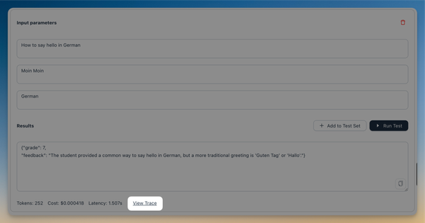 1. You can now view traces directly in the playground. This feature enables you to debug your application while configuring it—for example, by examining the prompts sent to the LLM or reviewing intermediate outputs.